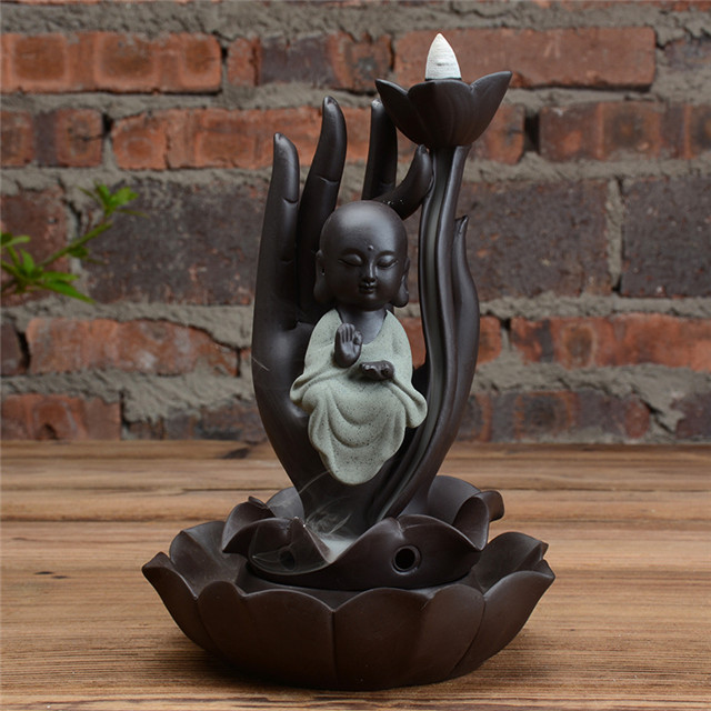 | Description | Ceramic Buddha Hand and Little Monk Backflow Incense Burner |