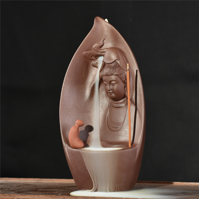 Home Furnishing Decorate Ceramic Statue Golden guanyin Ceramic Backflow Incense Burner