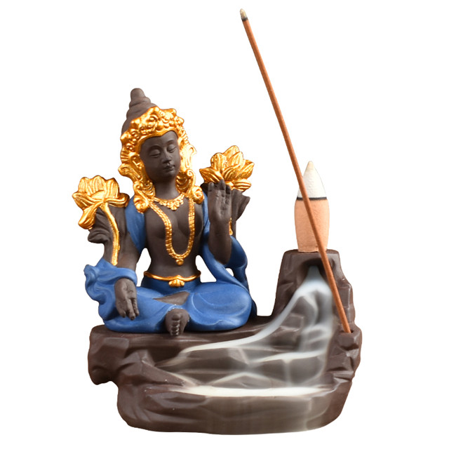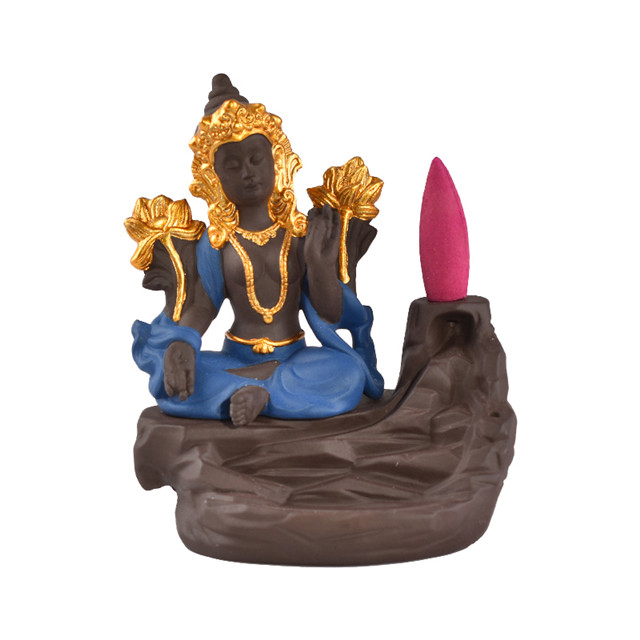 Home Furnishing Decorate Ceramic Statue blue Goddess Ceramic Backflow Incense Burner